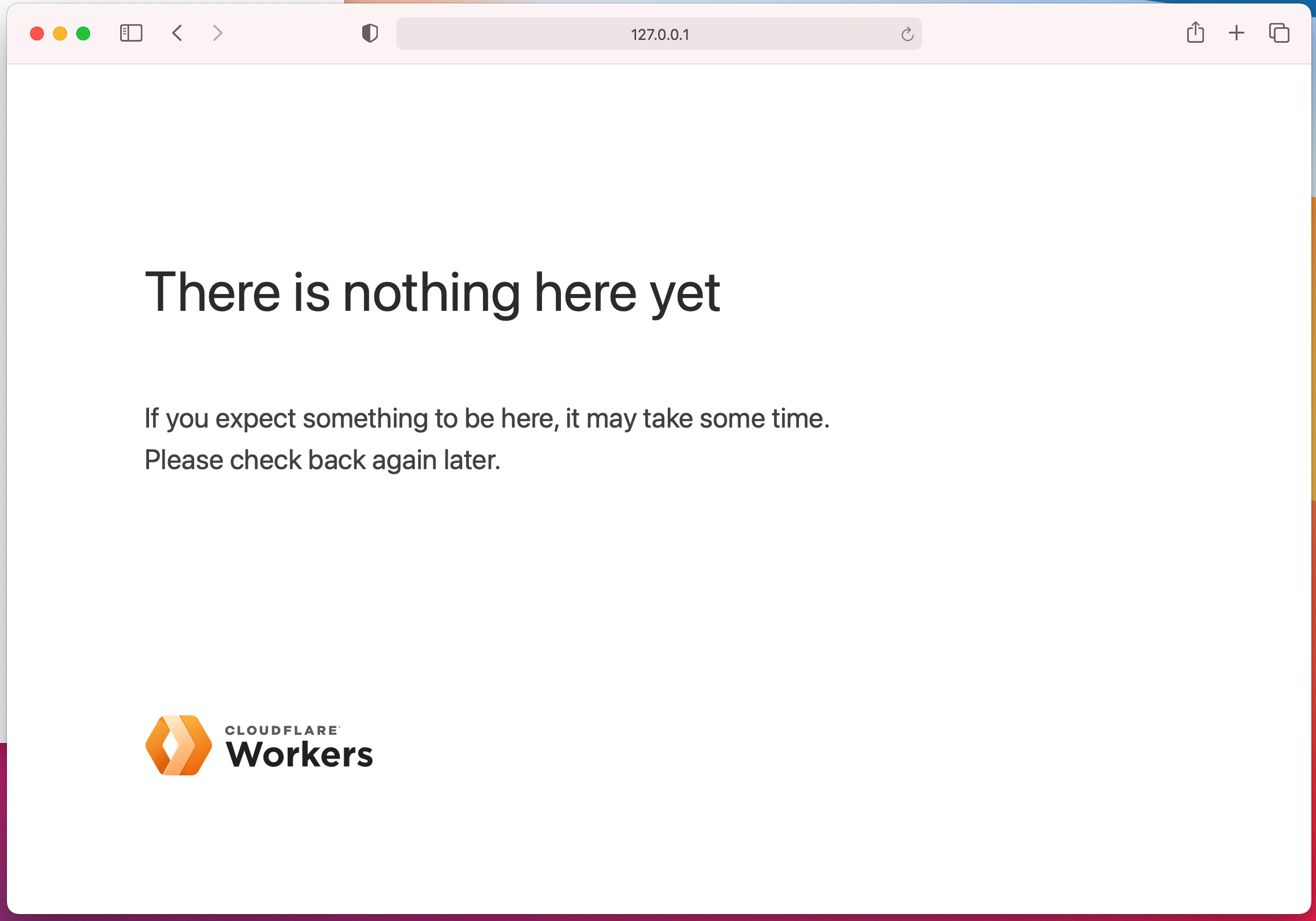 Our local setup does not forward to a real website, so we see the 404 page of Cloudflare, which is okay.