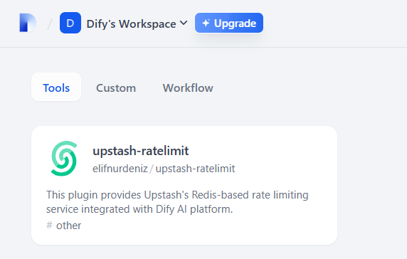 I've developed and published a custom Dify Plugin that uses Upstash Rate Limiting. The code repository for the plugin can be found here.